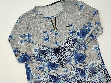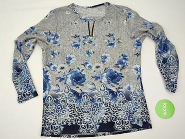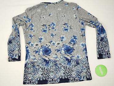 Bluzka damska z długim rękawem, rozmiar 48. - Wzór: bogaty, geometryczno‑kwiatowy print w odcieniach błękitu, granatu, różu, beżu i bieli - Krój: prosty, swobodny; okrągły dekolt; dół oraz mankiet...