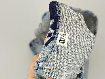 - Wzór: kwiatowy nadruk w odcieniach niebieskiego na szarym tle; ozdobna, koronkowa grafika przy dole i na rękawach