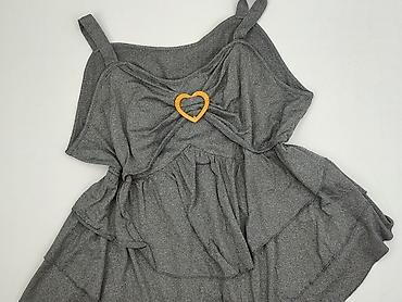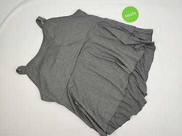 Szara bluzka damska na ramiączkach, rozmiar 5XL. Model z lekkiej, elastycznej dzianiny (95% poliester, 5% elastan) o miękkim chwycie. Przód z dekoracyjnymi marszczeniami i ozdobną klamrą w kształcie serca w kolorze żółto‑złotym. Dół wykończony warstwowo z efektownymi zakładkami, które ładnie układają się na sylwetce. Tył gładki. Idealna do letnich stylizacji lub na wieczorne wyjścia, dobrze łączy się zarówno z jeansami, jak i spódnicą.