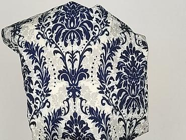 Bluzka damska w kwiaty, rozmiar 50. - Kolor: granatowy z nadrukiem kwiatów w odcieniach bieli, różu i fuksji - Krój: luźny, prosty - Dekolt: okrągły z delikatną falbanką i troczkami do wiązania - ...
