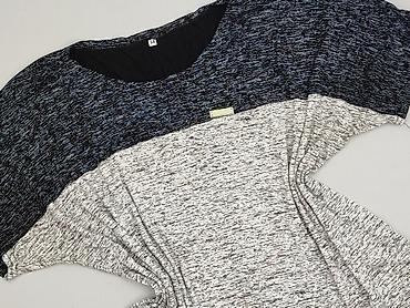 Bluzka damska z krótkim rękawem, rozmiar 54. - Fason: luźny, lekko przedłużony tył; okrągły dekolt - Rękaw: krótki, swobodny - Materiał: lekki, delikatnie połyskujący z podszewką od wewnątrz dla k...