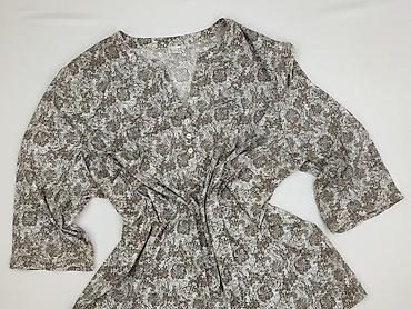Bluzka damska z krótkim rękawem, wzór abstrakcyjny - Rozmiar z metki: 50 - Krój: luźny, tunikowy - Dekolt: łódka z marszczeniem - Rękawy: krótkie, z troczkami do regulacji/marszczenia - Długość: d...