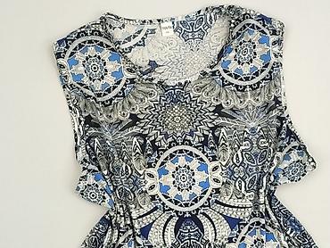 Bluzka damska z krótkim rękawem, rozmiar z metki: 50. - Fason: luźny, z wiązaniem przy dekolcie w kształcie V (długie troczki do zawiązania kokardy lub pozostawienia luźno). - Wzór: geometryczny,...