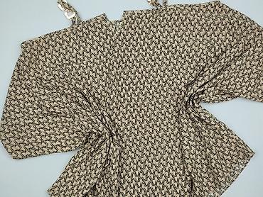 Bluzka damska z krótkim rękawem, rozmiar 50 - Krój: lekko pudełkowy, swobodny, z zaokrąglonym dekoltem - Wzór: kwiatowy, w odcieniach beżu, brązu i ecru; delikatny połysk i strukturalny splot tkan...
