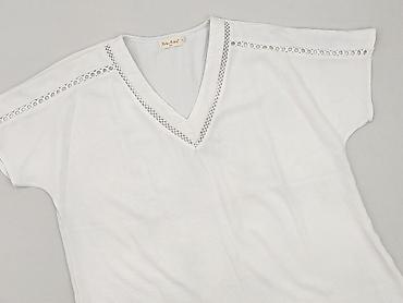 Bluzka damska z krótkim rękawem, biała - Krój: luźny top z obniżoną linią ramion, półokrągły dekolt - Długość: lekko wydłużony tył - Detale: dwie kieszonki po bokach z przodu - Materiał: lekka, pr...