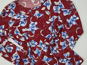 Bluzka damska z długim rękawem, rozmiar L. - Krój: klasyczny, okrągły dekolt, prosta linia - Wzór: duże kwiaty w odcieniach czerwieni i granatu na jasnoszarym tle, diagonalne pasy/ażurowe motywy -...