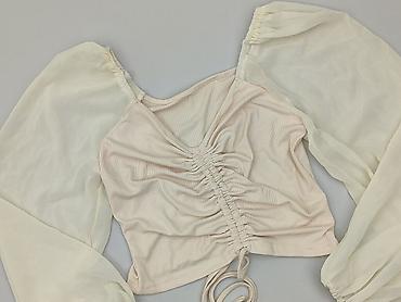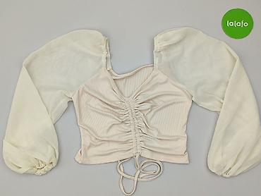 Bluzka damska Reserved - Model: krótka bluzka z marszczeniem i regulowanym ściągaczem na środku przodu - Kolor: ecru/śnieżna biel - Dekolt: w kształcie litery V - Rękawy: krótkie, rozszerzane/falb...