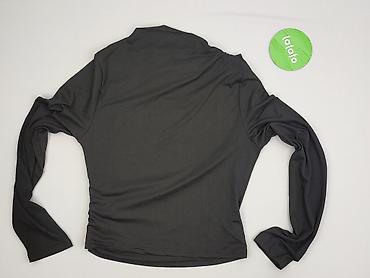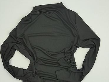 Czarna bluzka damska z długim rękawem, fason asymetryczny - Krój: luźniejsza góra z obniżoną linią ramion, asymetryczny dekolt z fantazyjną stójką po jednej stronie - Rękawy: długie - Dół zakończo...