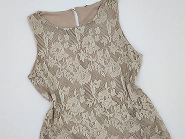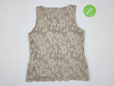 Bluzka damska bez rękawów, biała, z koronkową aplikacją - Krój: bez rękawów, okrągły dekolt - Materiał: miękka dzianina z przodu pokryta ażurową koronką o kwiatowym wzorze; tył gładki, elastyczny ...Stan: