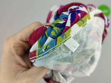 - Wzór: duże, intensywne kwiaty (odcienie fuksji, różu, zieleni, niebieskiego i fioletu) na białym tle