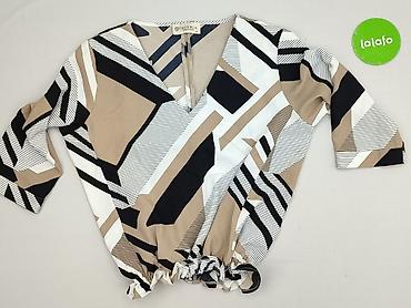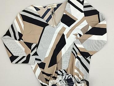 Bluzka damska Madex, rozmiar 40 - Fason: luźny, z marszczeniem na dole (gumka) i przy mankietach - Rękaw: długi - Dekolt: okrągły - Wzór: geometryczne romby w odcieniach beżu, ecru i czerni - Mate...