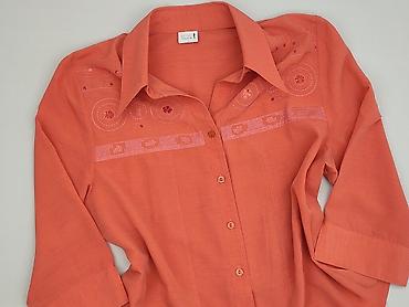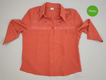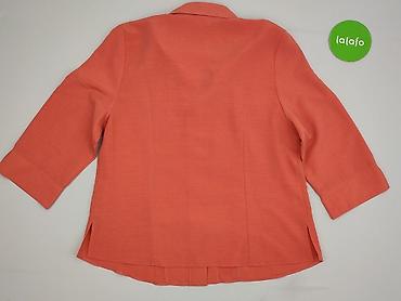 Bluzka damska JEDNOLIX, rozmiar 48 - Kolor: brzoskwiniowy/koralowy - Krój: lekko taliowana, z krótkim rękawem - Kołnierzyk: zaokrąglony „Peter Pan” - Zapięcie: rząd guzików na plecach - Przód: dek...