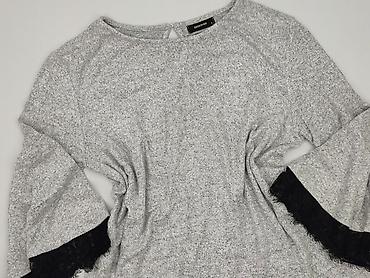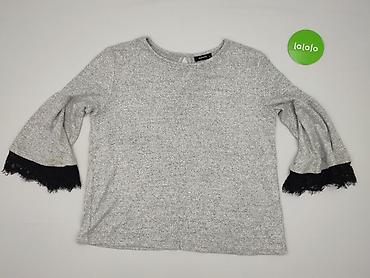 Szara bluzka damska z długim rękawem, CALM & CASUAL, rozmiar L. - Kolor: jasny szary melanż - Fason: luźny, lekko dłuższy tył, okrągły dekolt - Rękaw: długi - Ozdoba: szeroki, czarny pas z koronko...
