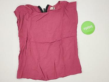 Bluzka damska z krótkim rękawem - Kolor: pudrowy róż - Fason: lekko luźny, z obniżoną linią ramion; dół delikatnie dłuższy z tyłu - Dekolt: zaokrąglony, wykończony błyszczącą lamówką w kolorze zbl...Stan: