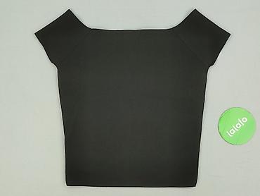 Bluzka damska RESERVED, rozmiar L - Kolor: czarny - Krój: dopasowana, długość do pasa - Materiał: elastyczna, prążkowana dzianina (miękka i sprężysta) - Rękawy: krótkie z koronkową fakturą o wzorz...Stan: