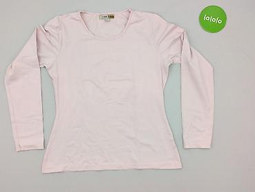 Bluzka damska z długim rękawem - Fason: dopasowany, długość do bioder - Dekolt: w kształcie litery V (z przodu i z tyłu) - Rozmiar: S (na metce) - Kolor: jasny róż/melanż z czerwonym, powtarzalnym...