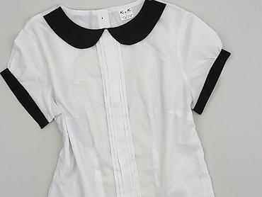 Elegancka, klasyczna bluzka z nutą retro dzięki zaokrąglonemu kołnierzykowi; kontrastowe elementy podkreślają linię ramion i nadają całości wyrazistości. Dla kobiety. Używana. Stan: bardzo dobry.
