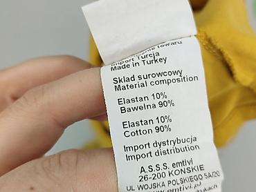 Żółta bluzka damska SABRA, rozmiar 40 - Fason: luźny, nietoperz z krótkim rękawem - Dekolt: okrągły - Dół i rękawy wykończone elastycznym ściągaczem - Przód zdobiony aplikacją z drobnych kryształk...
