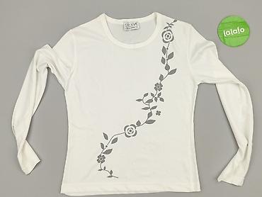 Biała bluzka damska M/L, Made in Britain - Krój: prosty, z krótkim rękawem i okrągłym dekoltem - Rozmiar z metki: M/L - Skład materiału: 95% poliester, 5% elastan – miękka, elastyczna dzianina o d...Rozmiar: