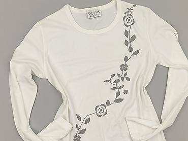 Biała bluzka damska M/L, Made in Britain - Krój: prosty, z krótkim rękawem i okrągłym dekoltem - Rozmiar z metki: M/L - Skład materiału: 95% poliester, 5% elastan – miękka, elastyczna dzianina o d...