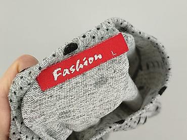 Szara damska bluzka w czarne grochy - Marka: Hazar (metka widoczna na zdjęciu) - Krój: luźna, z obniżoną linią ramion/krótkim rękawkiem „nietoperz” - Dekolt: okrągły - Wzór: polka dot (czarne krop...