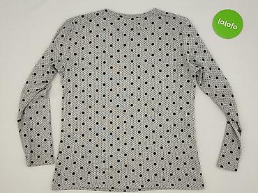 Bluzka damska w kolorowe grochy - Rozmiar: L (z metki) - Materiał: 100% poliester - Kolor/print: białe tło, wielobarwne kropki - Krój: prosty, swobodny - Dekolt: okrągły - Rękawy: 3/4 z marszczony...