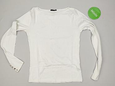 Biała damska bluzka/sweterek by Me… z długim rękawem. - Krój: lekko luźny, z opuszczoną linią ramion - Rękawy zdobione dużymi, połyskującymi złotymi guzikami (po 3 na każdym mankiecie) – efektowny...