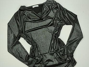 Czarny, błyszczący top damski Party 21 - Krój: kopertowy dekolt w serek, długie rękawy, dopasowany dół z elastycznego materiału - Materiał: 90% akryl, 10% elastan (metka producenta) - Góra: ażurow...