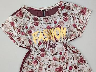Bluzka damska Antena, rozmiar M - Krój: t-shirt, krótki rękaw, okrągły dekolt - Wzór: kwiaty – czerwone i szare kwiaty z liśćmi na jasnym tle - Materiał: gładki, lekko połyskujący i miękki w dotyk...