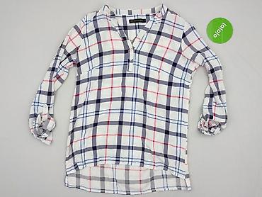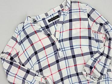 Bluzka damska QUIOSQUE, rozmiar 38 - Wzór: drobna kratka gingham w granatowo-białej tonacji - Krój: prosty, lekko dopasowany, z zaokrąglonym dekoltem - Rękawy: długie, zakończone mankietami zapinan...