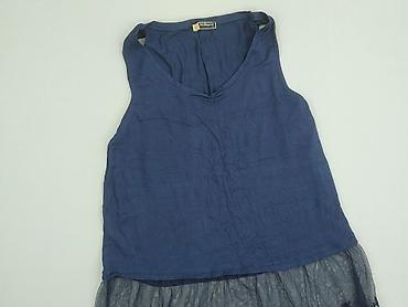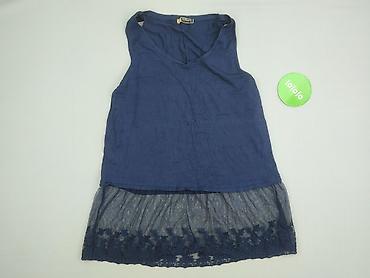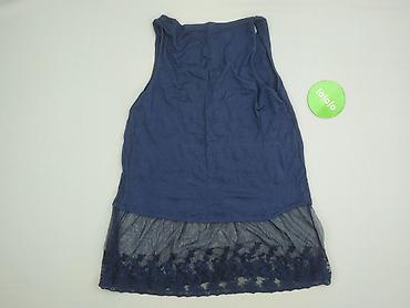 Ażurowa bluzka bez rękawów – damska - Kolor: granatowy - Krój: luźny, rozszerzany po bokach; lekko dłuższe, nieregularne boki dla zwiewnego efektu - Dekolt: okrągły - Materiał: koronkowa/siateczko...Rozmiar: