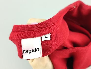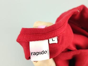 Dodatki wizualne: kontrastowy panel w paski i guziki przy ramieniu nadają bluzce charakteru i wysmuklają sylwetkę. Marka: Rapido (metka widoczna na zdjęciu). Rozmiar z metki: L. Idealna propozycja dla kobiet ceniących wygodę i oryginalne detale.