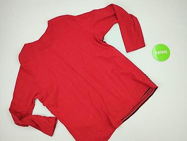 Czerwona bluzka damska, rozmiar 38. - Fason: luźny, z krótkim rękawem typu kimono/dolman - Dekolt: okrągły - Zapięcie: rząd ozdobnych guzików z tyłu - Dół: szeroki, elastyczny ściągacz - Materiał:...