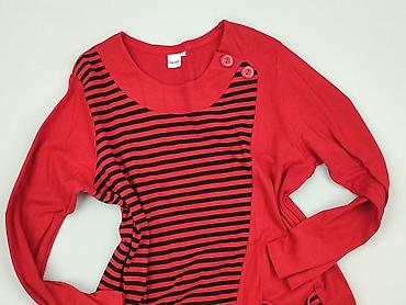 Bluzka damska LOOKat, rozmiar XL (44) - Kolor: intensywna czerwień - Fason: z długim rękawem, lekko dopasowana - Dekolt: półokrągły, wykończony ozdobną lamówką w biało-czerwone paski - Detal: dekor...