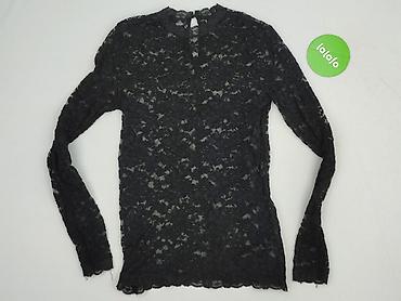 Bluzka damska z długim rękawem, czarna, z koronkowym wykończeniem u dołu. - Krój: lekko rozkloszowany dół, półokrągły dekolt, asymetryczne wycięcie z koronką na brzegu (z przodu i z tyłu). - Rękaw...