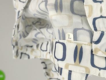 Bluzka damska z długim rękawem, rozmiar L. - Krój: klasyczny, okrągły dekolt, prosta linia - Wzór: duże kwiaty w odcieniach czerwieni i granatu na jasnoszarym tle, diagonalne pasy/ażurowe motywy -...