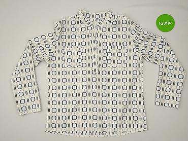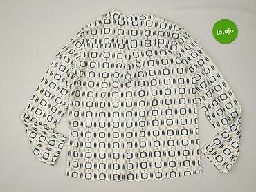 Bluzka damska z długim rękawem, wzór geometryczny - Krój: luźny, wygodny, z delikatnym marszczeniem przy ramionach - Dekolt: w kształcie litery V z krótką listwą guzikową (3 guziki z przodu) - Ręk...