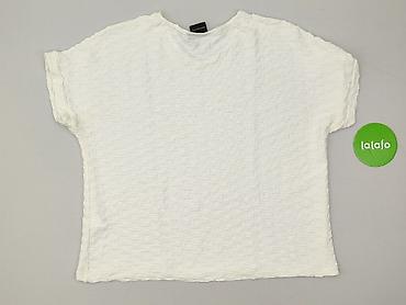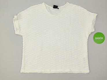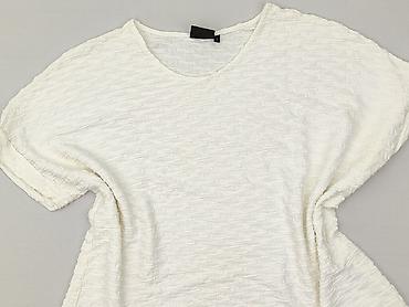 Biała bluzka damska z krótkim rękawem - Fason: luźny, oversize; lekko opadające rękawy - Dekolt: w kształcie litery V z krótką stójką - Materiał: 100% poliester (metka na zdjęciu) - Rozmiar z metk...