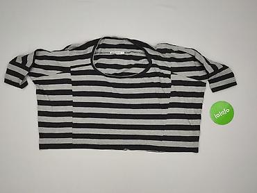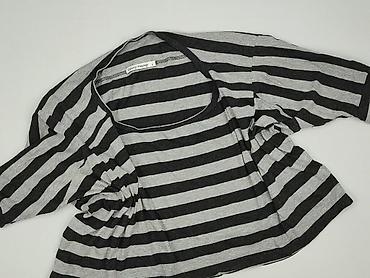 Damska bluzka w paski - Krój: prosty, lekko luźny - Rękaw: 3/4 - Dekolt: okrągły - Wzór: poziome pasy w kolorze czarnym i jasnoszarym - Długość: do bioder - Materiał: miękka dzianina bawełniana z ...
