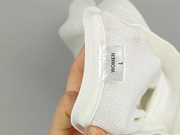 Biała bluzka damska M/L, Made in Britain - Krój: prosty, z krótkim rękawem i okrągłym dekoltem - Rozmiar z metki: M/L - Skład materiału: 95% poliester, 5% elastan – miękka, elastyczna dzianina o d...