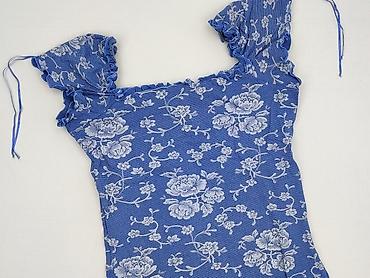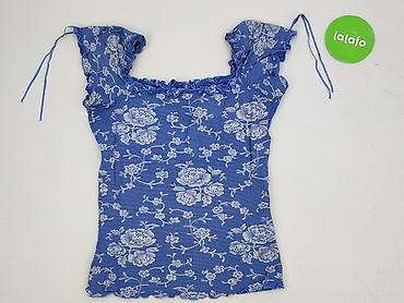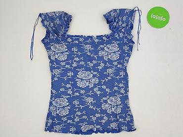 Bluzka damska hiszpanka, rozmiar 40 - Fason: hiszpanka z odkrytymi ramionami, szeroka falbana przy dekolcie - Krój: lekko dopasowany, długość do bioder - Wzór: biało‑niebieski, kwiatowo‑roślinny -...