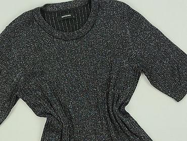 Czarna bluzka damska Reserved, rozmiar L. - Krój: luźny, z obniżoną linią ramion; rękawy 3/4. - Dekolt: okrągły. - Ozdoby: górna część przodu zdobiona metalicznymi dżetami/kryształkami w różnym ks...