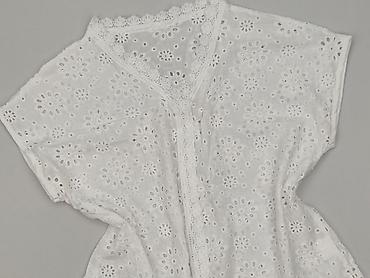 Biała bluzka damska z ażurowym przodem - Rozmiar: L (na metce WOMEN L) - Krój: luźny, z opadającym rękawkiem (krótkie, nietoperzowe rękawy), okrągły dekolt - Przód: tkanina ażurowa z haftem w kwia...Rozmiar: