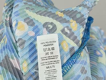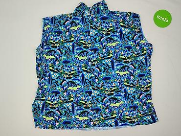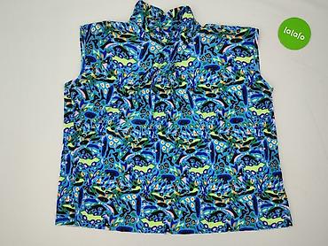 Damska bluzka bez rękawów, rozmiar L. - Krój: lekko rozszerzany, zaokrąglony dół; wycięte pachy i dekolt podkreślają ramiona. - Wzór: geometryczne, koncentryczne kółka w odcieniach niebieskiego, ...