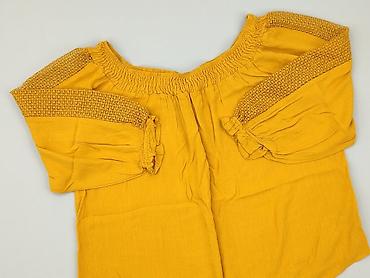 Bluzka damska w paski, musztardowa - Krój: luźny, swobodny, długość do bioder - Dekolt/ramiona: hiszpański krój z elastyczną gumką wokół dekoltu; można nosić na ramionach lub lekko opuszczoną - Rę...