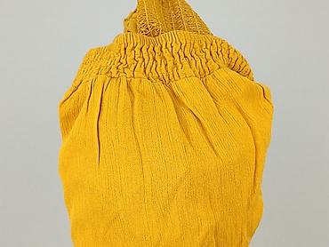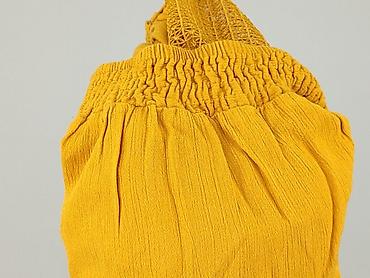 Bluzka damska F&F w kolorze musztardowym. - Krój: luźny, z wycięciami na ramionach (cold shoulder) - Rękawy krótkie, zakończone ozdobnymi wiązaniami - Dekolt półokrągły, z tyłu wcięcie w kształcie...