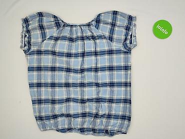Bluzka damska KappAhl w kratkę - Marka: KappAhl - Krój: luźny, z gumką u dołu; krótkie, lekko bufiaste rękawy - Dekolt: okrągły z wiązaniem na kokardkę - Wzór: niebiesko-biała kratka - Materiał: 6...