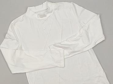 Biała bluzka damska z długim rękawem - Krój: luźny, lekko skrócony, z widocznym pionowym szwem na środku przodu - Dekolt: okrągły - Rękawy: długie, z szerokimi mankietami - Materiał: cienka, półpr...
