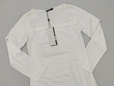 Bluzka damska BLUE, rozmiar 40. - Kolor: biały/ecru - Fason: luźny, z delikatnym ściągaczem na dole - Rękawy: długie, zakończone szeroką koronkową wstawką - Dekolt: okrągły - Koronkowe wstawki z p...