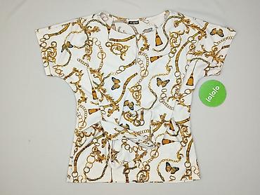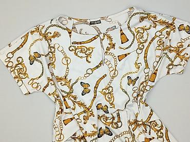 - Wzór: bogaty, barokowy print na białym tle – złote łańcuchy, zdobne ornamenty, frędzle oraz motyle